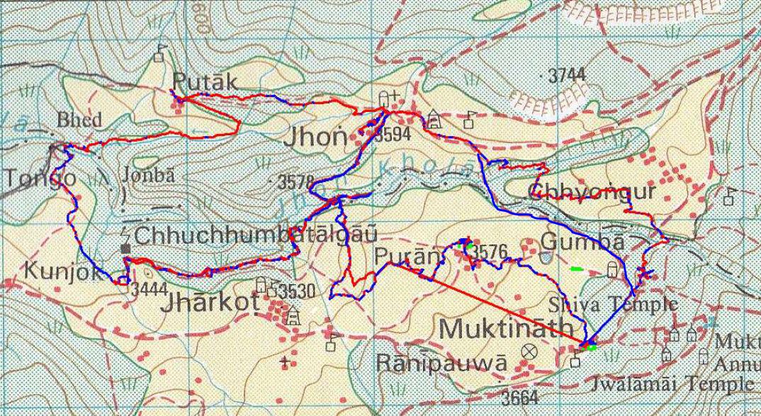 Maps: Nepal map 1-50000 – Muktinath 2883-04 – Datum NEPAL 84 – 40m – zone N3190000, E476000 – N3208000,E500000ftp://jfmeyer@ftp.jfmeyer.be/www/media/Carte_Muktinath_Kagbeni_50000.pdf ftp://jfmeyer@ftp.jfmeyer.be/www/media/Muktinath-Kagbeni%20par%20les%20bords%20de%20riviere.pdf